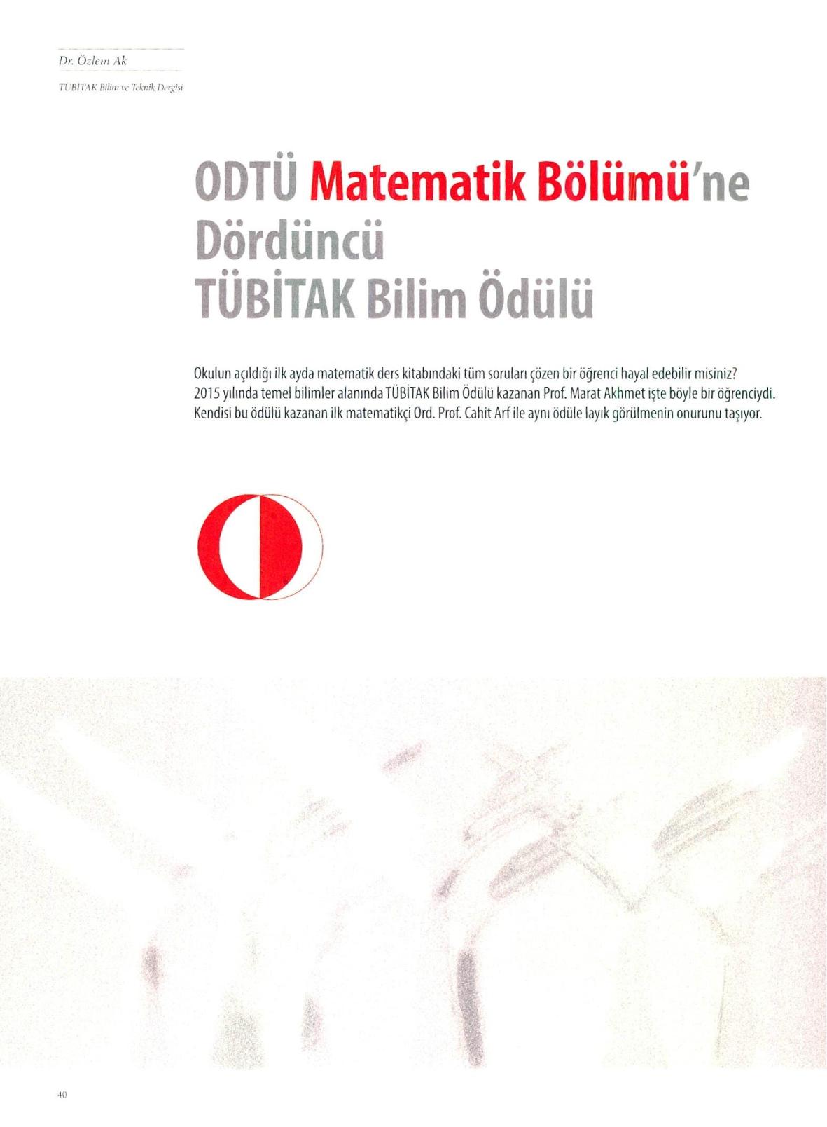 ODTÜ MATEMATİK BÖLÜMÜ'NE DÖRDÜNCÜ TÜBİTAK BİLİM ÖDÜLÜ