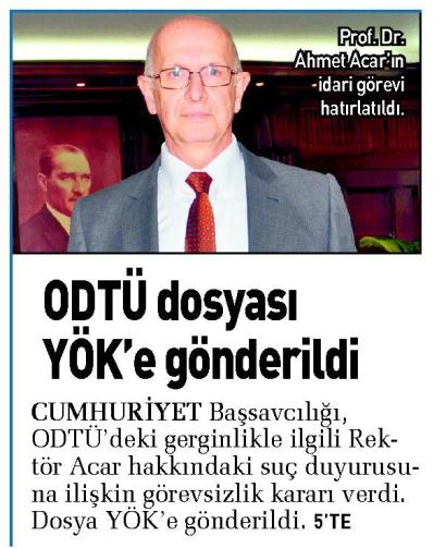 ODTÜ DOSYASI YÖK'E GÖNDERİLDİ