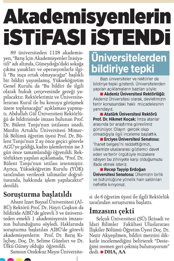 AKADEMİSYENLERİN İSTİFASI İSTENDİ