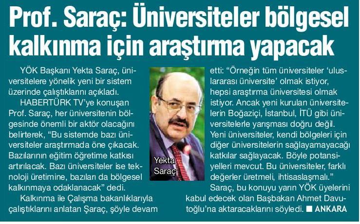 PROF. SARAÇ: ÜNİVERSİTELER BÖLGESEL KALKINMA İÇİN ARAŞTIRMA YAPACAK