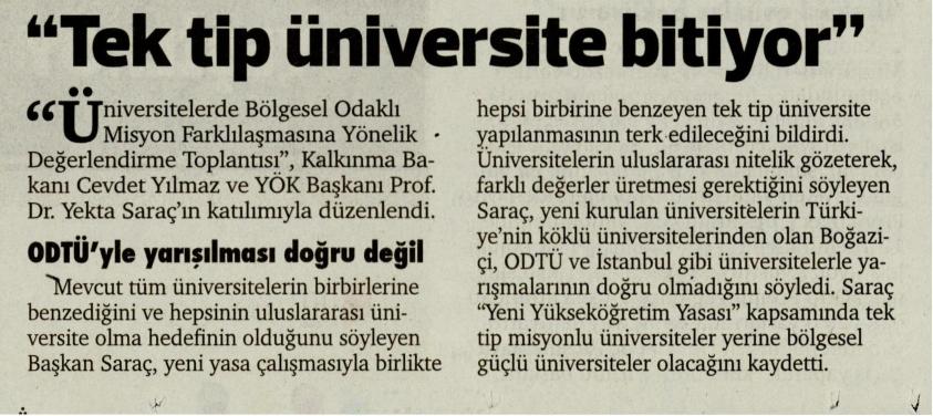 "TEK TİP ÜNİVERSİTE BİTİYOR"