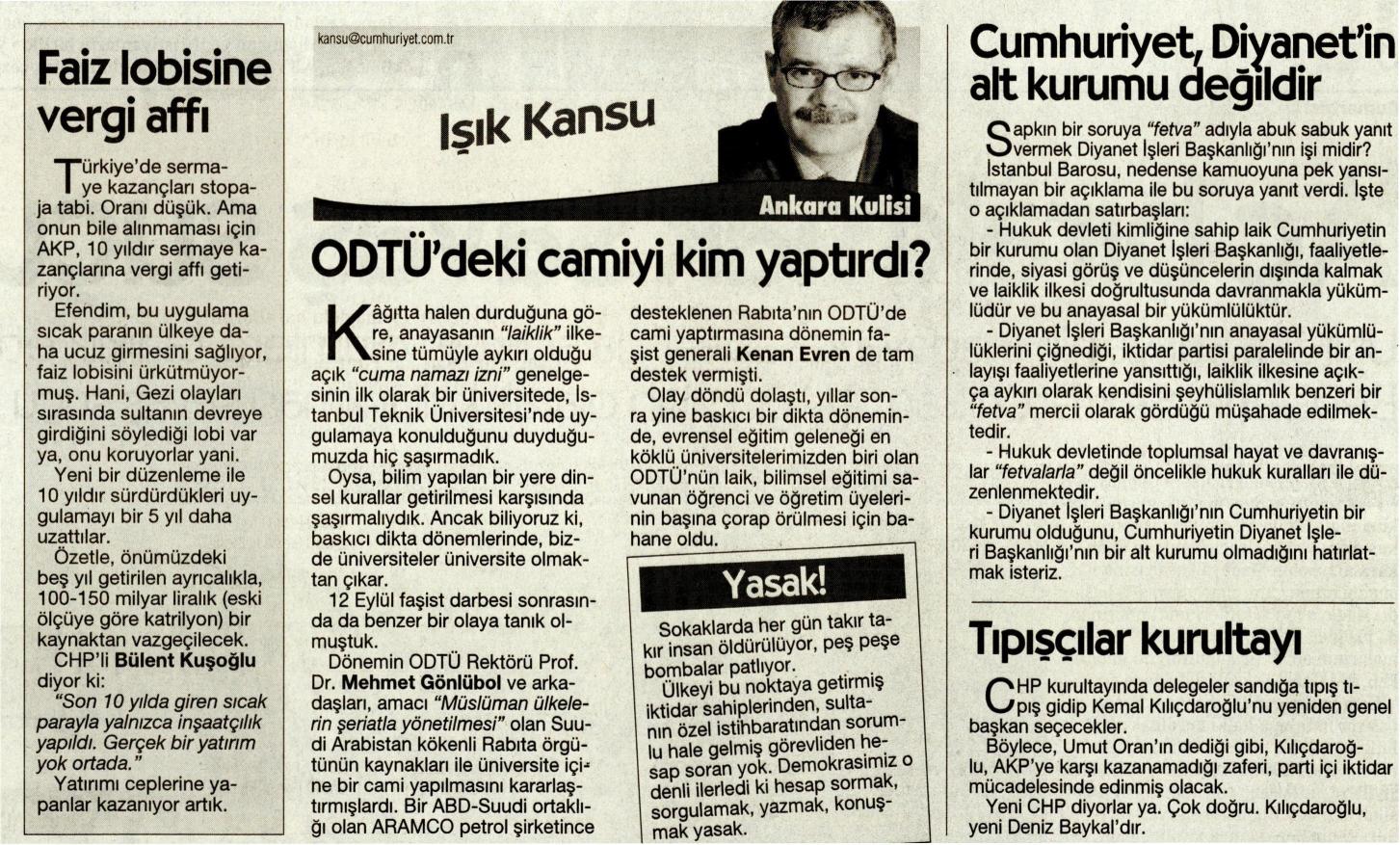 ODTÜ'DEKİ CAMİYİ KİM YAPTIRDI?