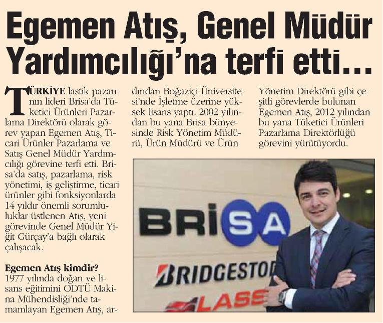EGEMEN ATIŞ, GENEL MÜDÜR YARDIMCILIĞI'NA TERFİ ETTİ...