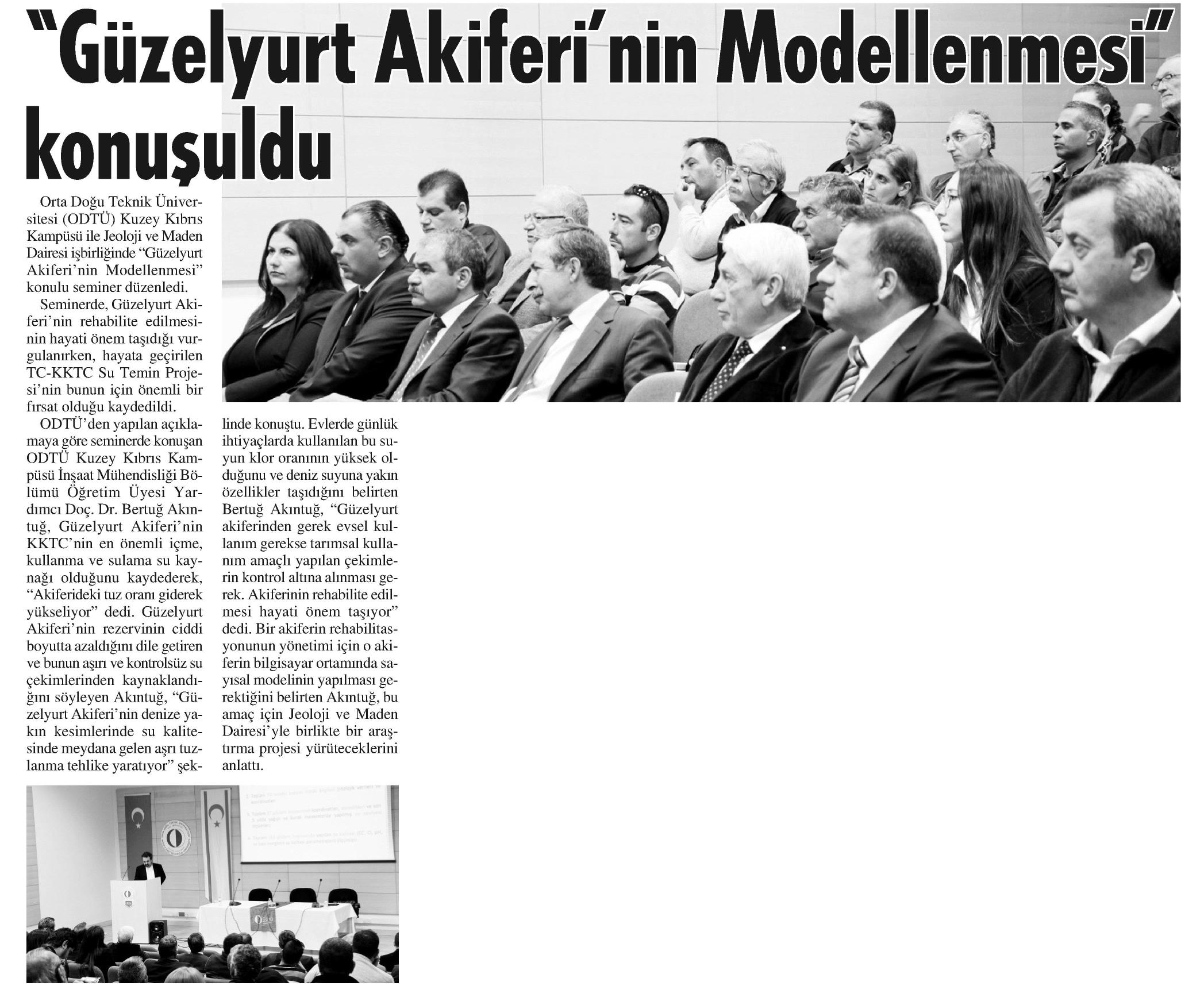 'GÜZELYURT AKİFERİ'NİN MODELLENMESİ' KONUŞULDU
