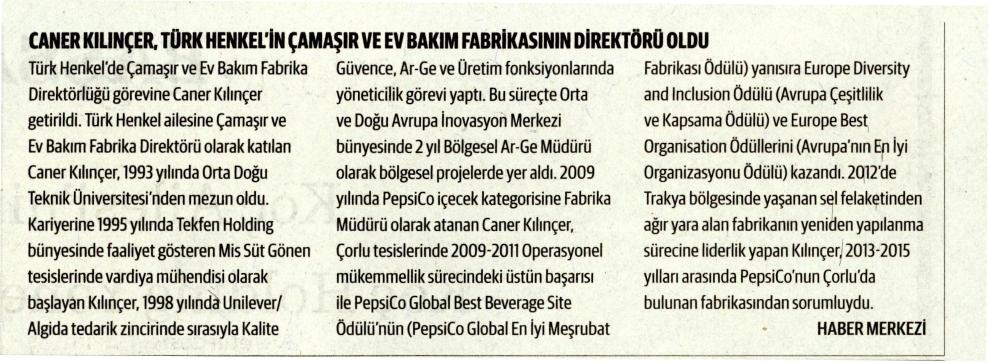 CANER KILINÇER, TÜRK HENKEL'İN ÇAMAŞIR VE EV BAKIM FABRİKASININ DİREKTÖRÜ OLDU