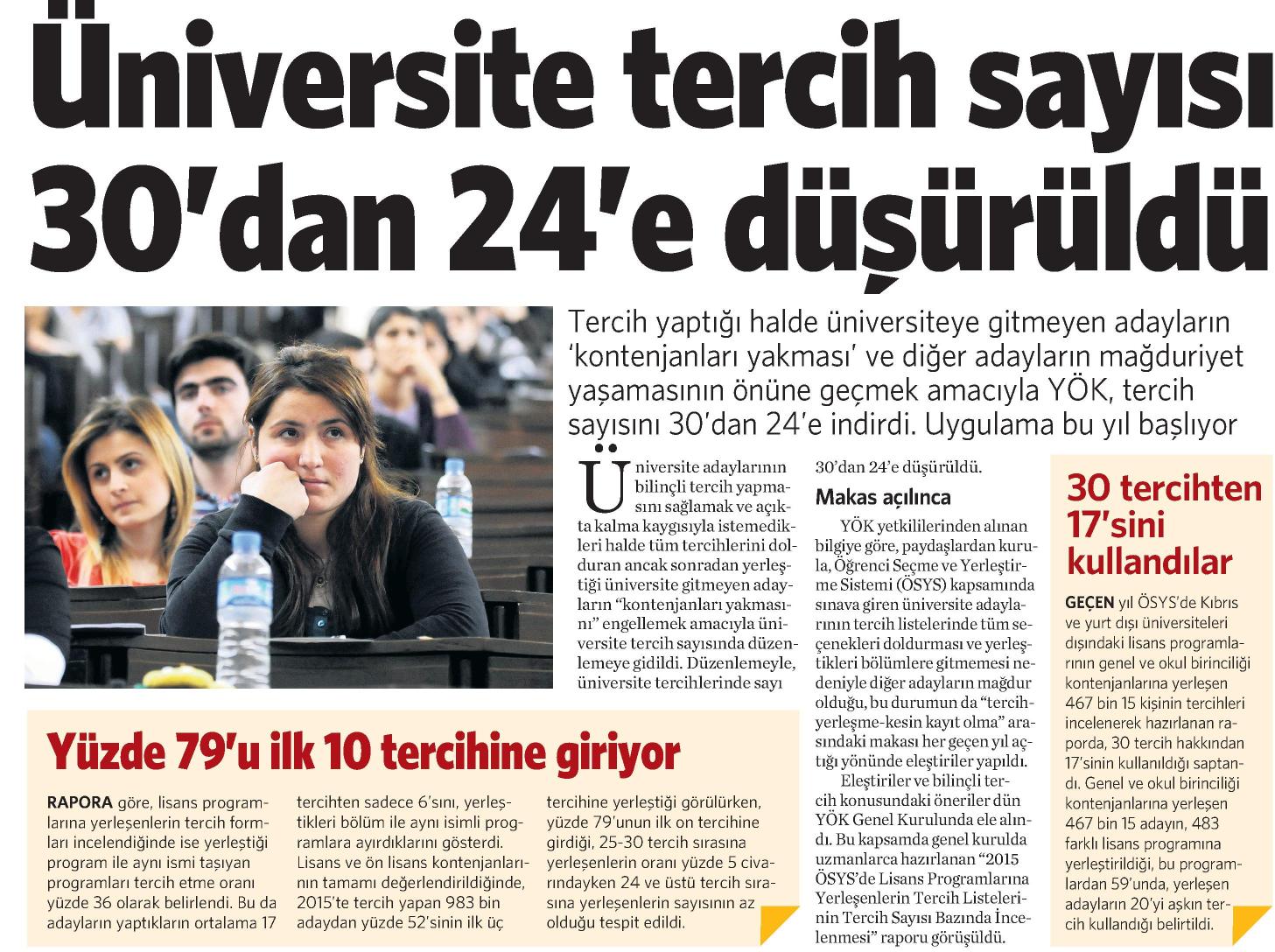 ÜNİVERSİTE TERCİH SAYISI 30'DAN 24'E DÜŞÜRÜLDÜ