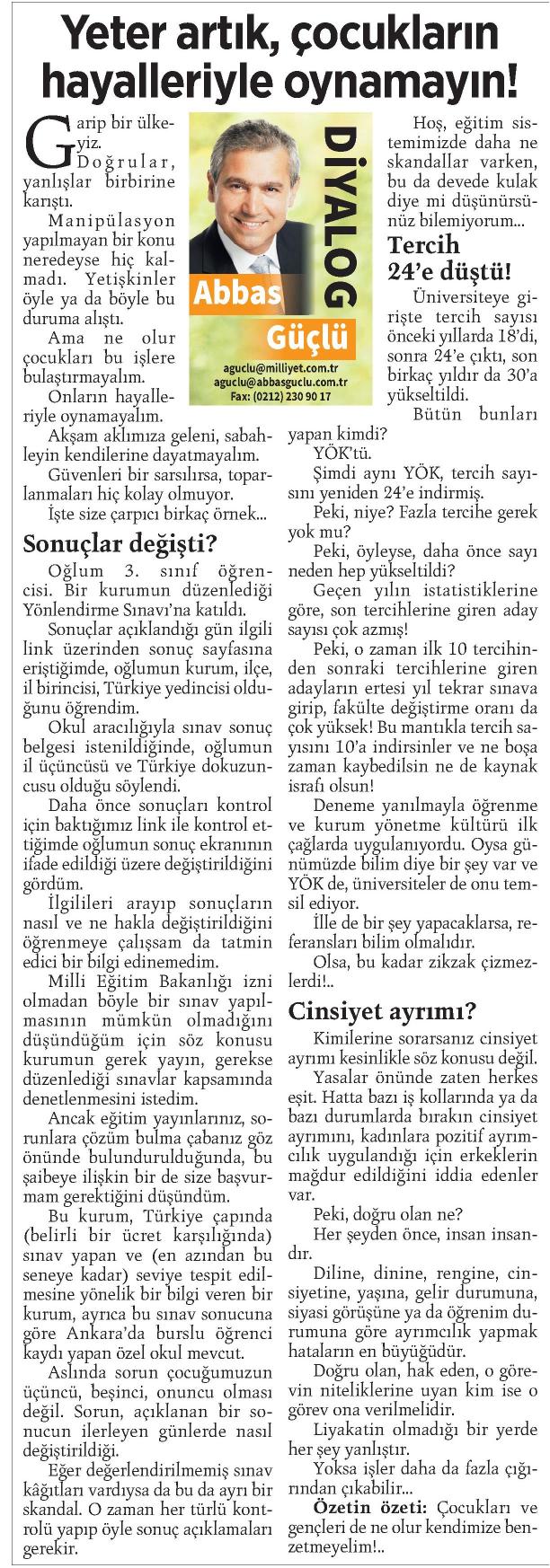 YETER ARTIK, ÇOCUKLARIN HAYALLERİYLE OYNAMAYIN!