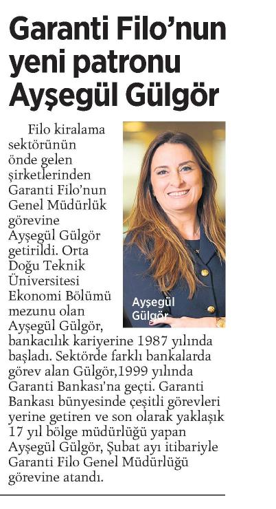 GARANTİ FİLO'NUN YENİ PATRONU AYŞEGÜL GÜLGÖR
