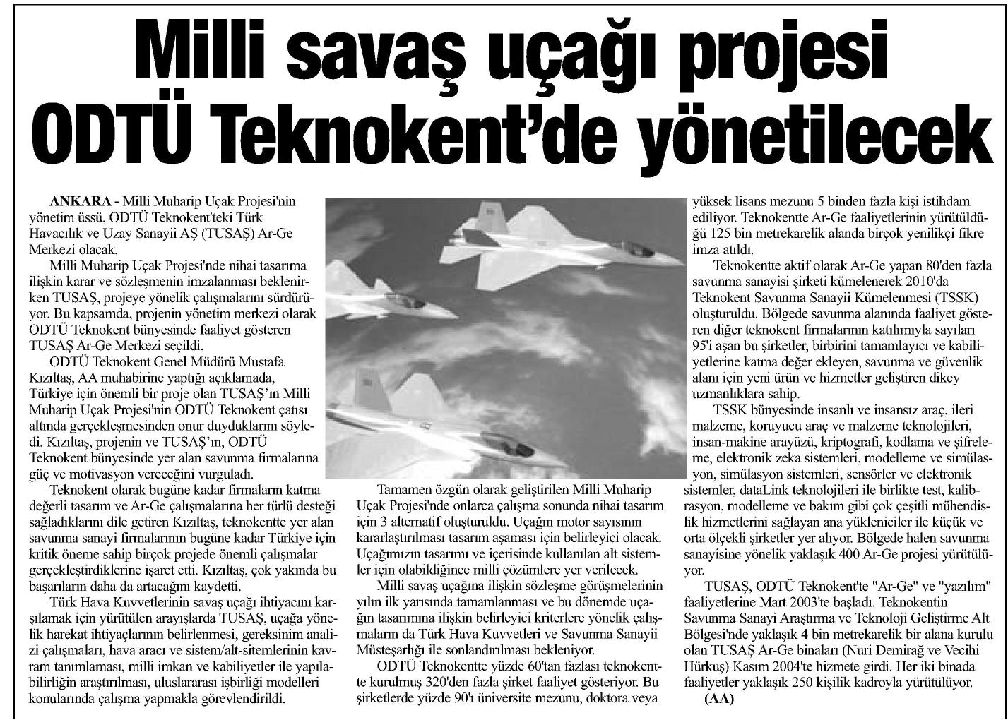 MİLLİ SAVAŞ UÇAĞI PROJESİ TEKNOKENT'DE YÖNETİLECEK