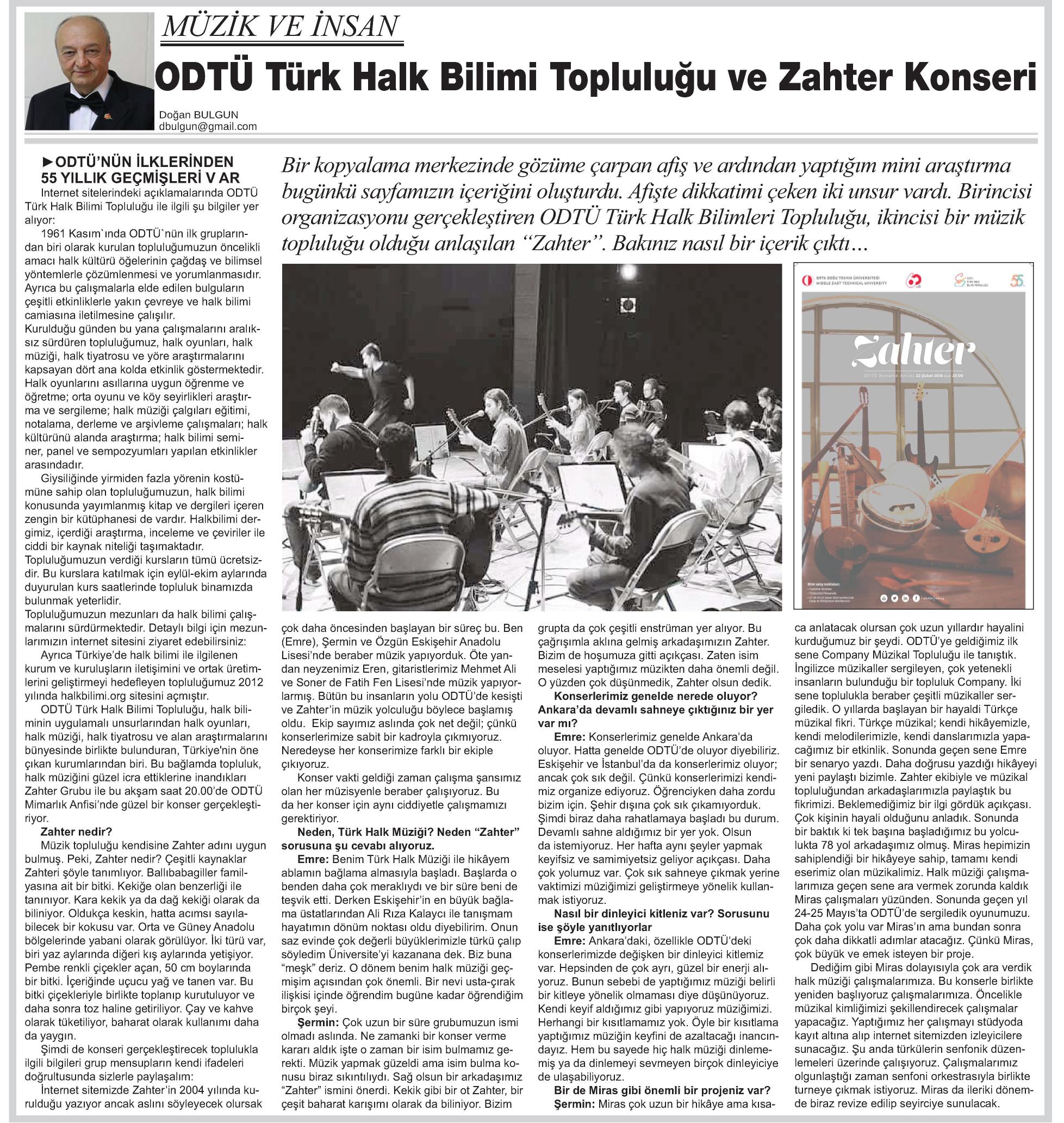 ODTÜ TÜRK HALK BİLİMİ TOPLULUĞU VE ZAHTER KONSERİ