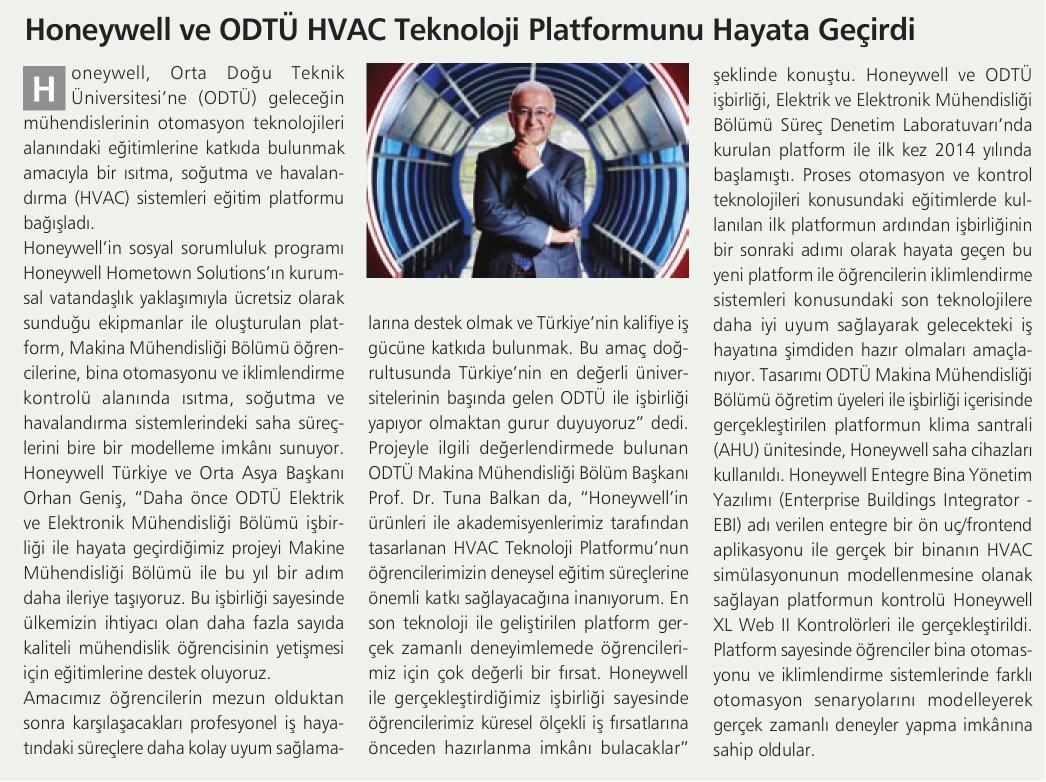 HONEYWELL VE ODTÜ HVAC TEKNOLOJİ PLATFORMUNU HAYATA GEÇİRDİ