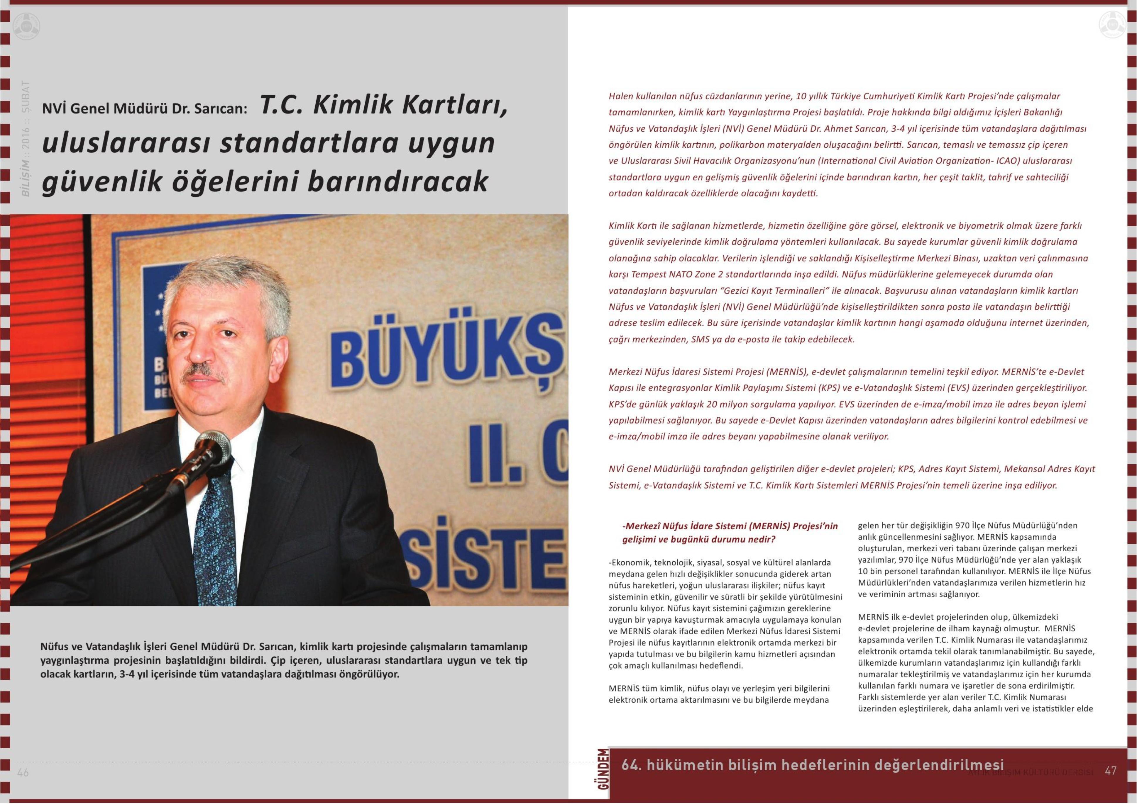 NVİ GENEL MÜDÜRÜ DR. SARICAN: T.C. KİMLİK KARTLARI, ULUSLARARASI STANDARTLARA UYGUN GÜVENLİK ÖĞELERİNİ BARINDIRACAK