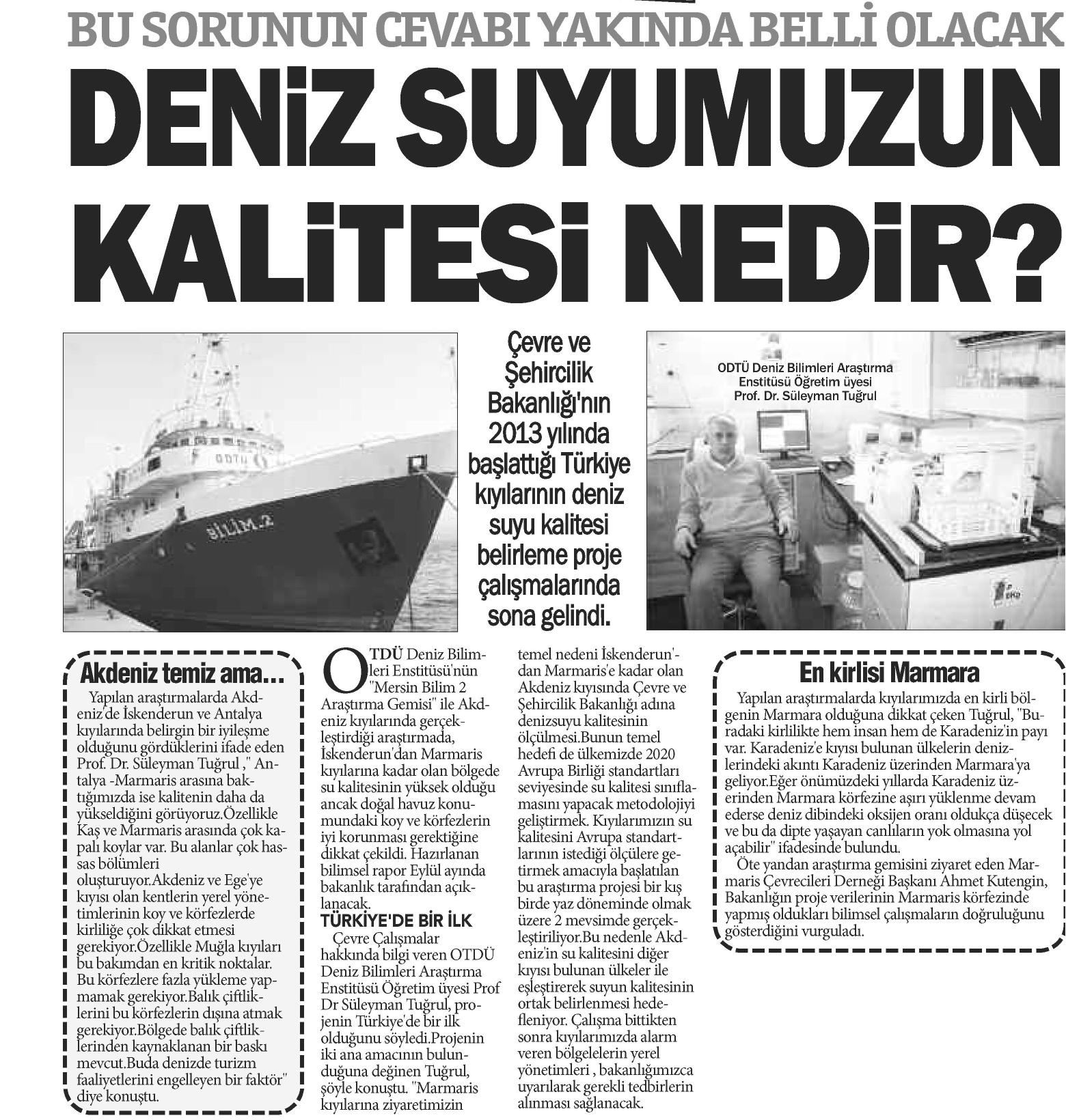 BU SORUNUN CEVABI YAKINDA BELLİ OLACAK: DENİZ SUYUMUZUN KALİTESİ NEDİR?
