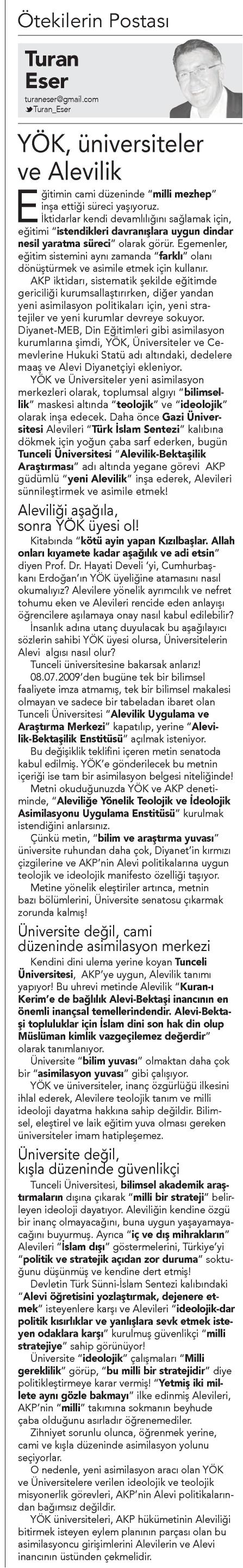 YÖK, ÜNİVERSİTELER VE ALEVİLİK