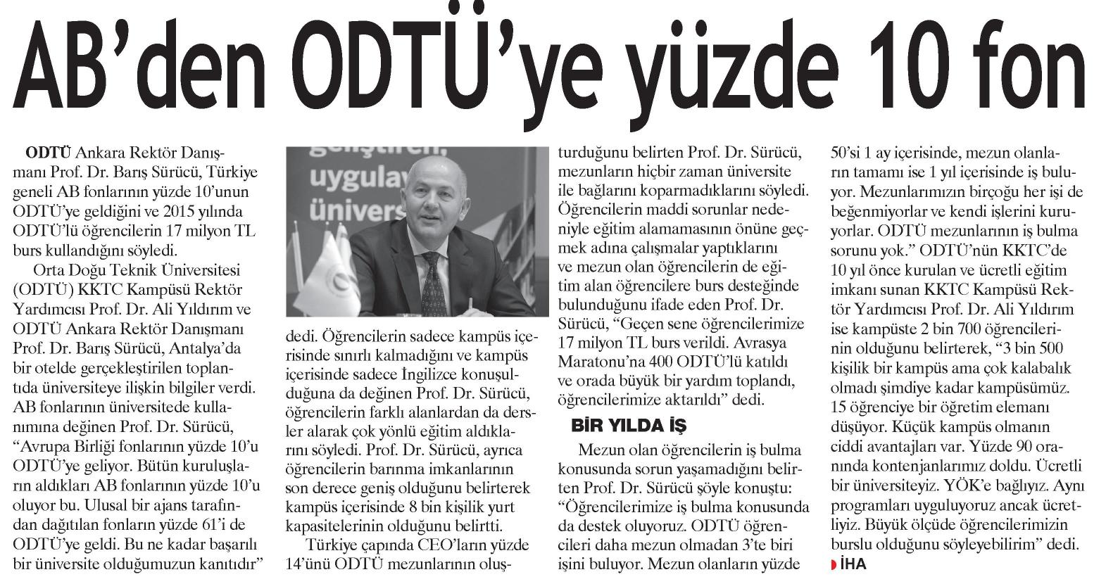 AB'DEN ODTÜ'YE YÜZDE 10 FON