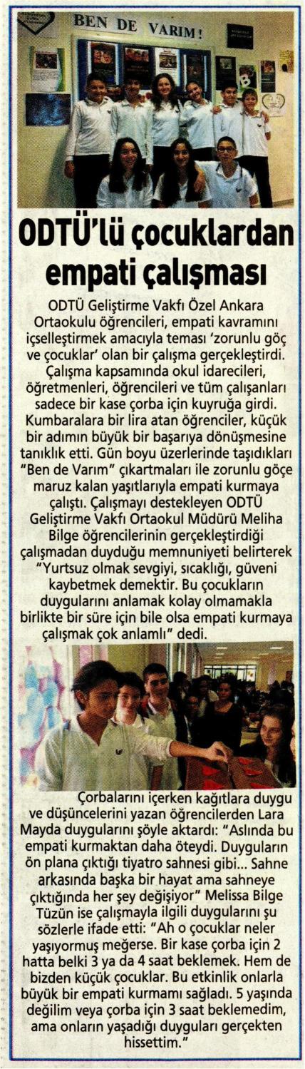 ODTÜ'LÜ ÇOCUKLARDAN EMPATİ ÇALIŞMASI