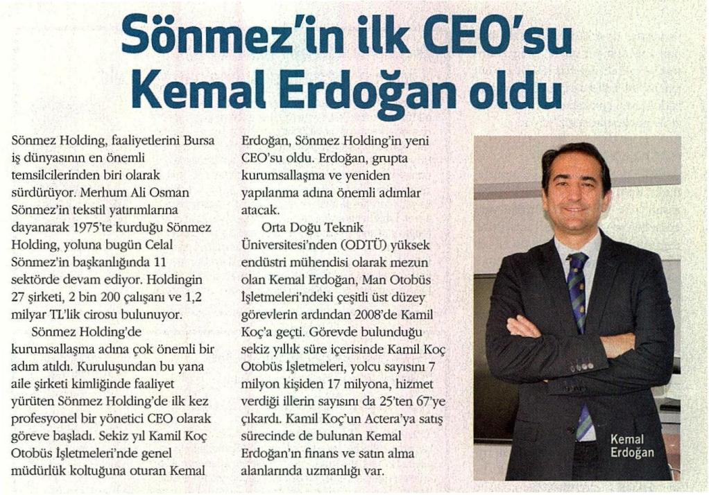 SÖNMEZ'İN İLK CEO'SU KEMAL ERDOĞAN OLDU