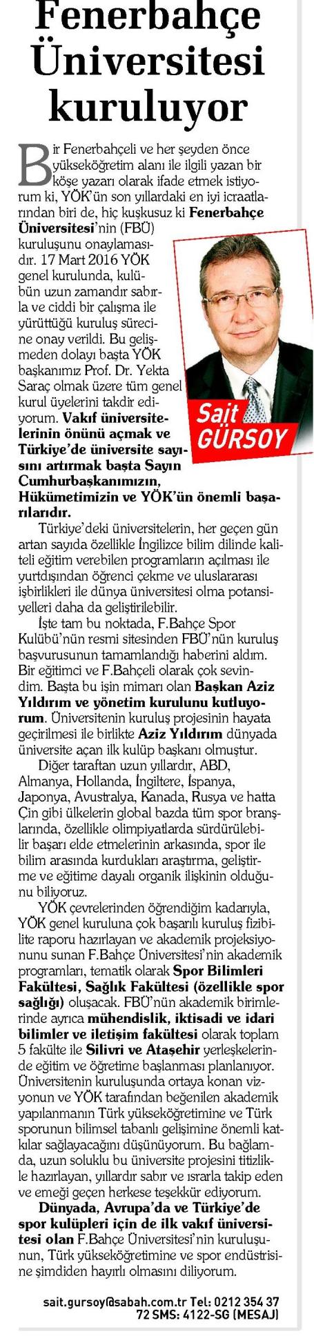 FENERBAHÇE ÜNİVERSİTESİ KURULUYOR