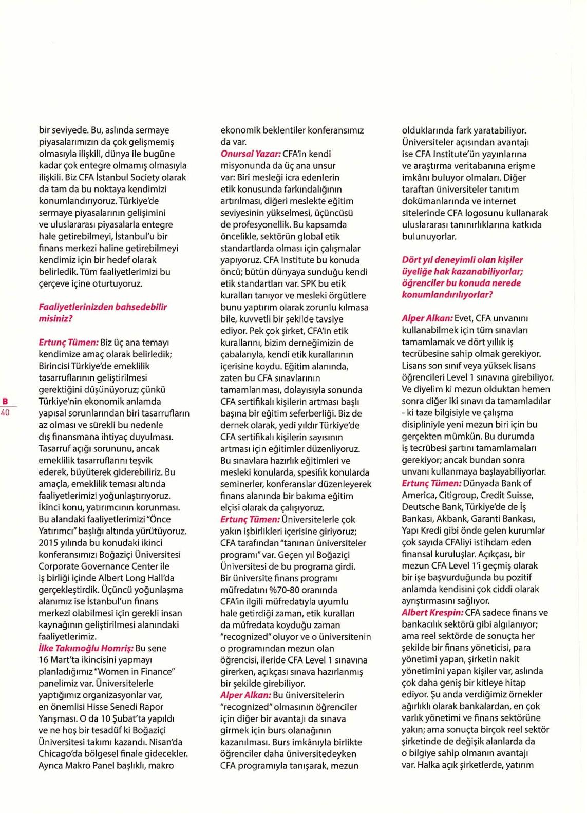 BİR DERNEK ÇATISI ALTINDA FİNANS VE YATIRIM: CFA SOCIETY OF İSTANBUL [Devam - 2]