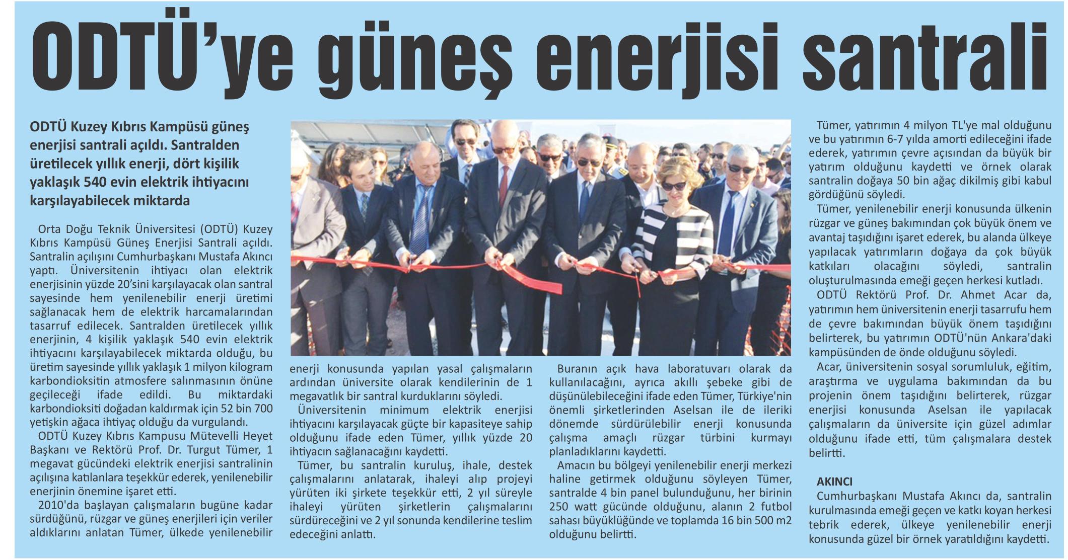 ODTÜ'YE GÜNEŞ ENERJİSİ SANTRALİ