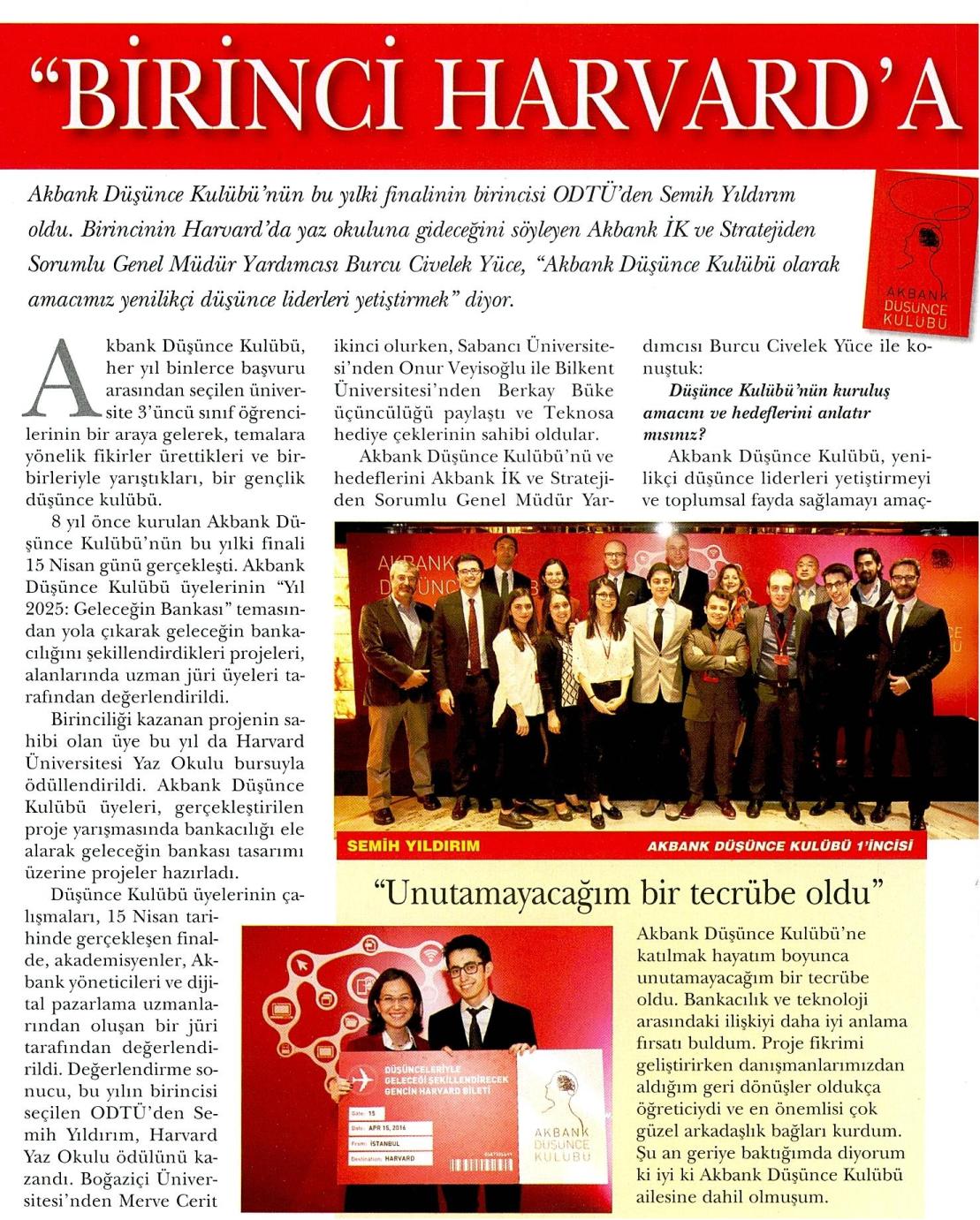 'BİRİNCİ HARVARD'A GİDECEK'