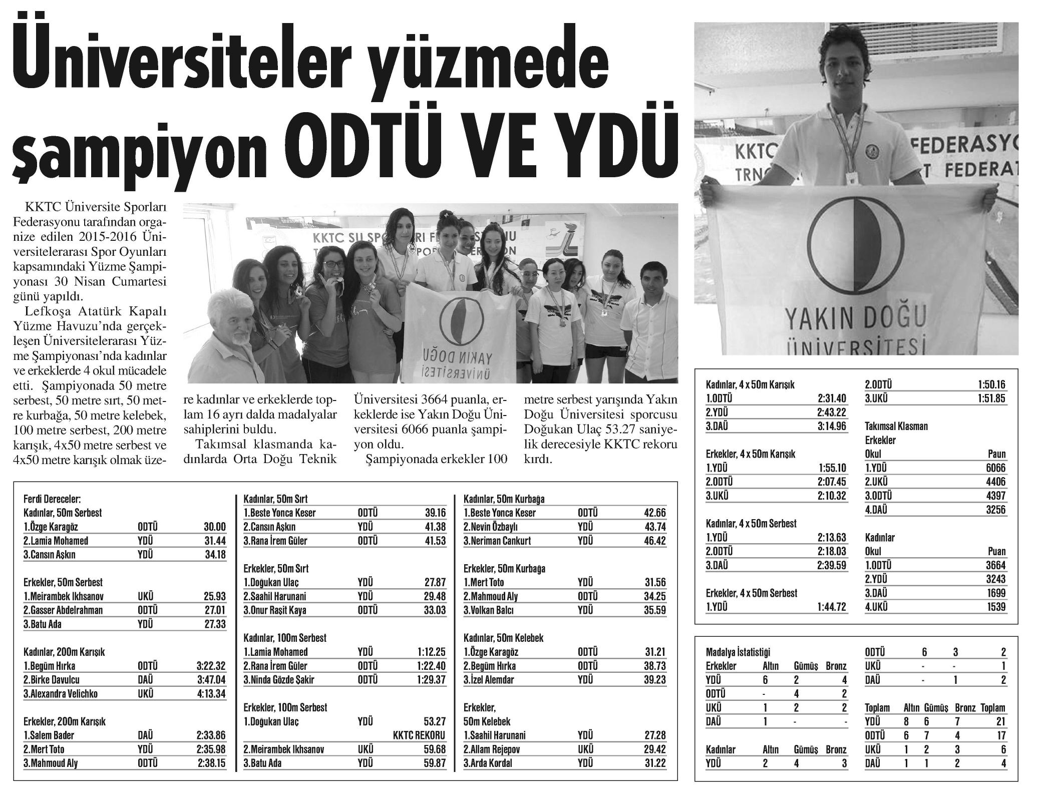ÜNİVERSİTELER YÜZMEDE ŞAMPİYON ODTÜ VE YDÜ