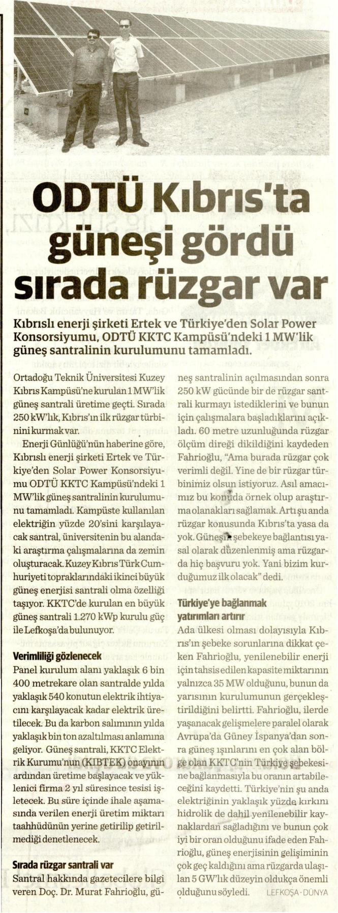 ODTÜ KIBRIS'TA GÜNEŞİ GÖRDÜ SIRADA RÜZGAR VAR