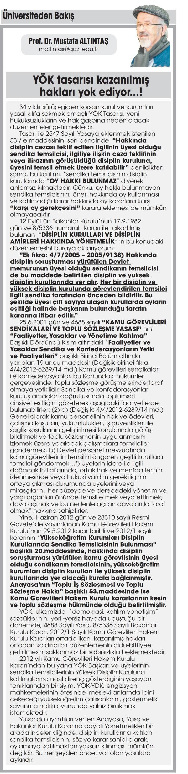 YÖK TASARISI KAZANILMIŞ HAKLARI YOK EDİYOR...!