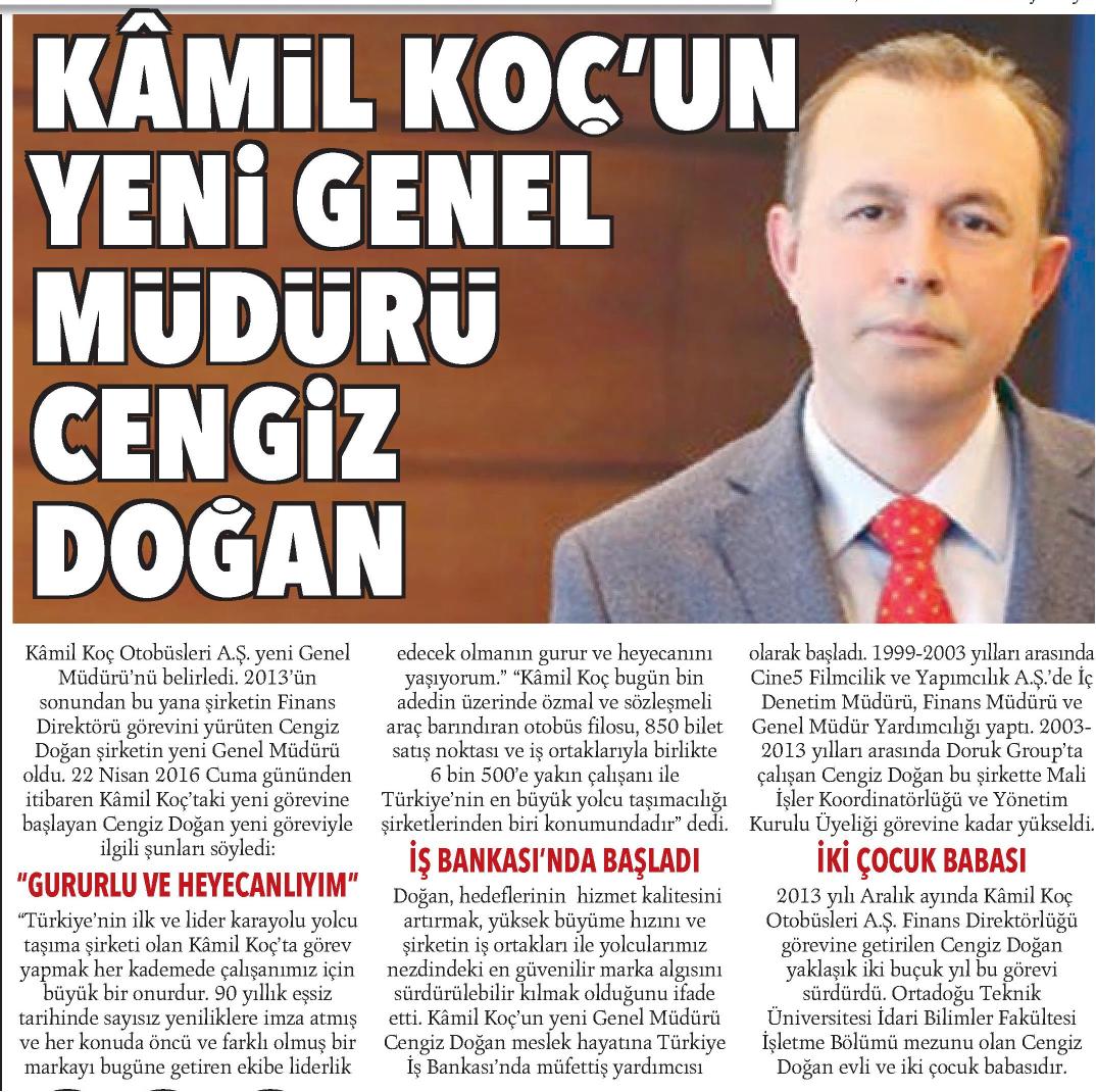 KAMİL KOÇ'UN YENİ GENEL MÜDÜRÜ CENGİZ DOĞAN