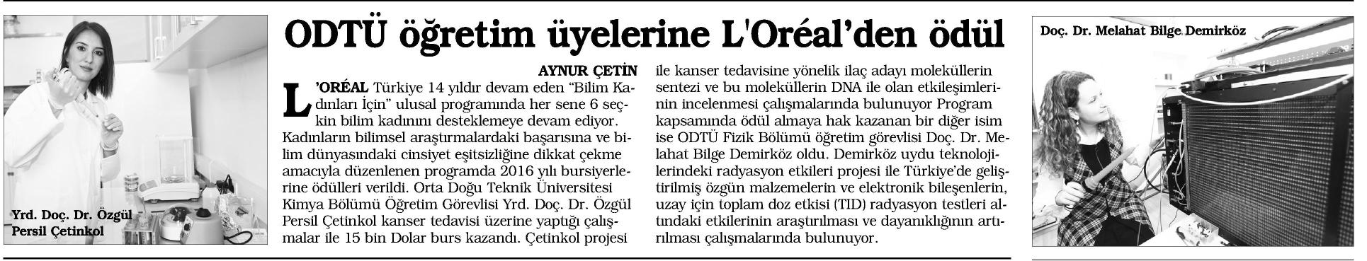 ODTÜ ÖĞRETİM ÜYELERİNE L'OREAL'DEN ÖDÜL
