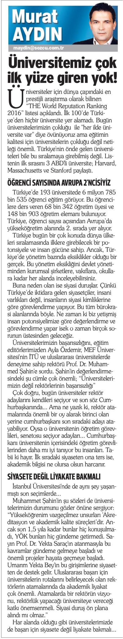 ÜNİVERSİTEMİZ ÇOK İLK YÜZE GİREN YOK!