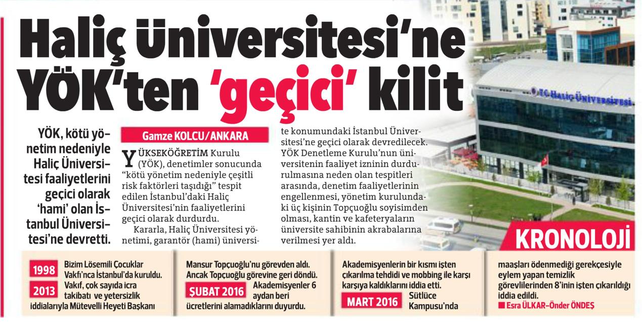 HALİÇ ÜNİVERSİTESİNE YÖK'TEN 'GEÇİCİ' KİLİT