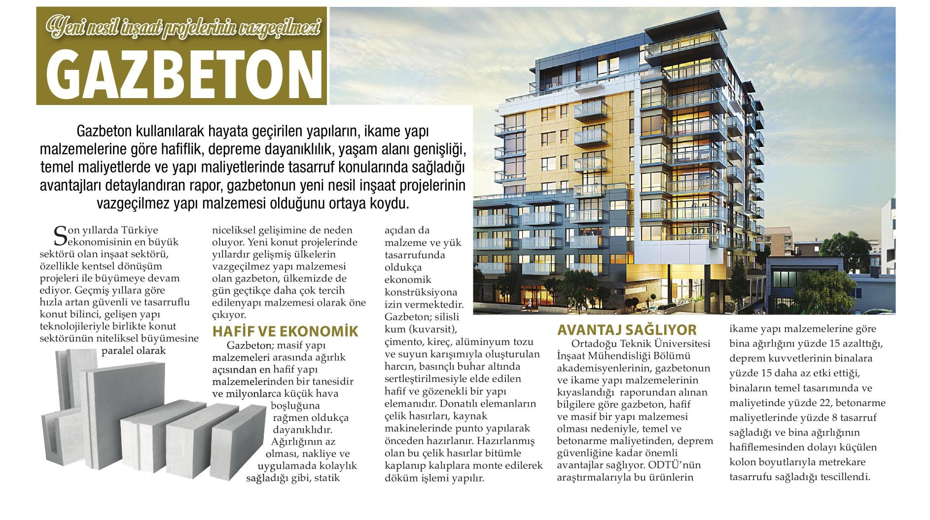 YENİ NESİL İNŞAAT PROJELERİNİN VAZGEÇİLMEZİ GAZBETON