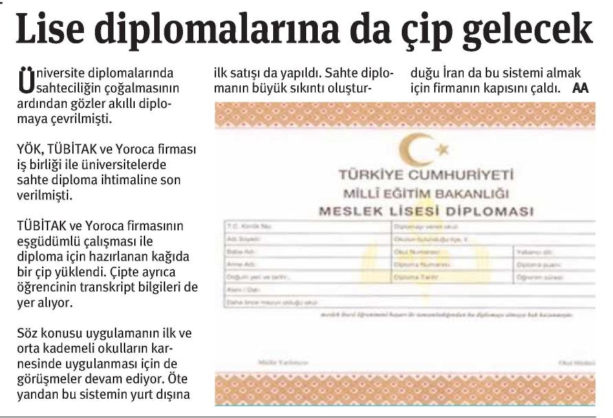 LİSE DİPLOMALARINA DA ÇİP GELECEK