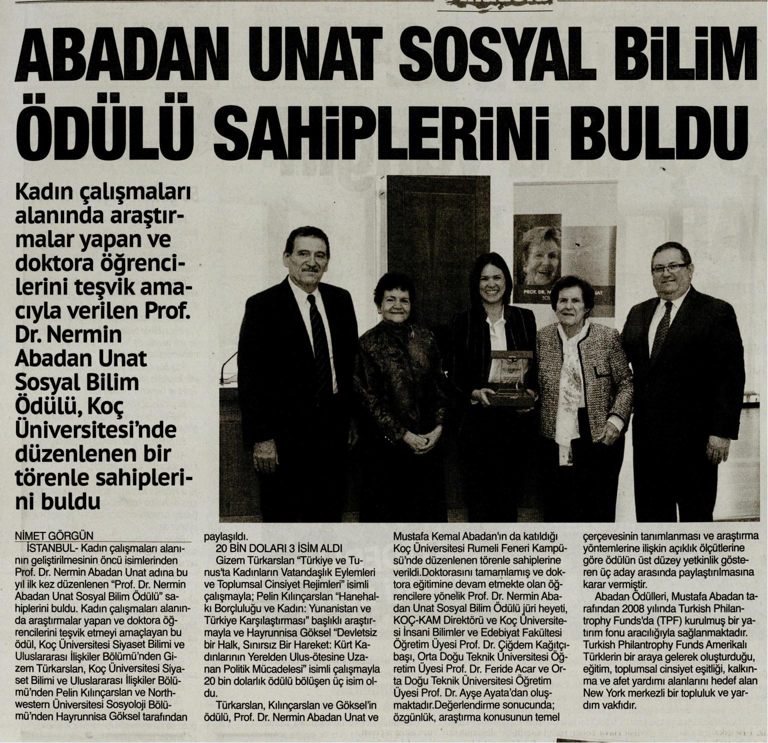 ABADAN UNAT SOSYAL BİLİM ÖDÜLÜ SAHİPLERİNİ BULDU