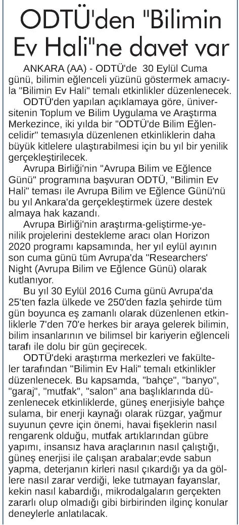 ODTÜ'DEN "BİLİMİN EV HALİ"NE DAVET VAR [Devam - 1]