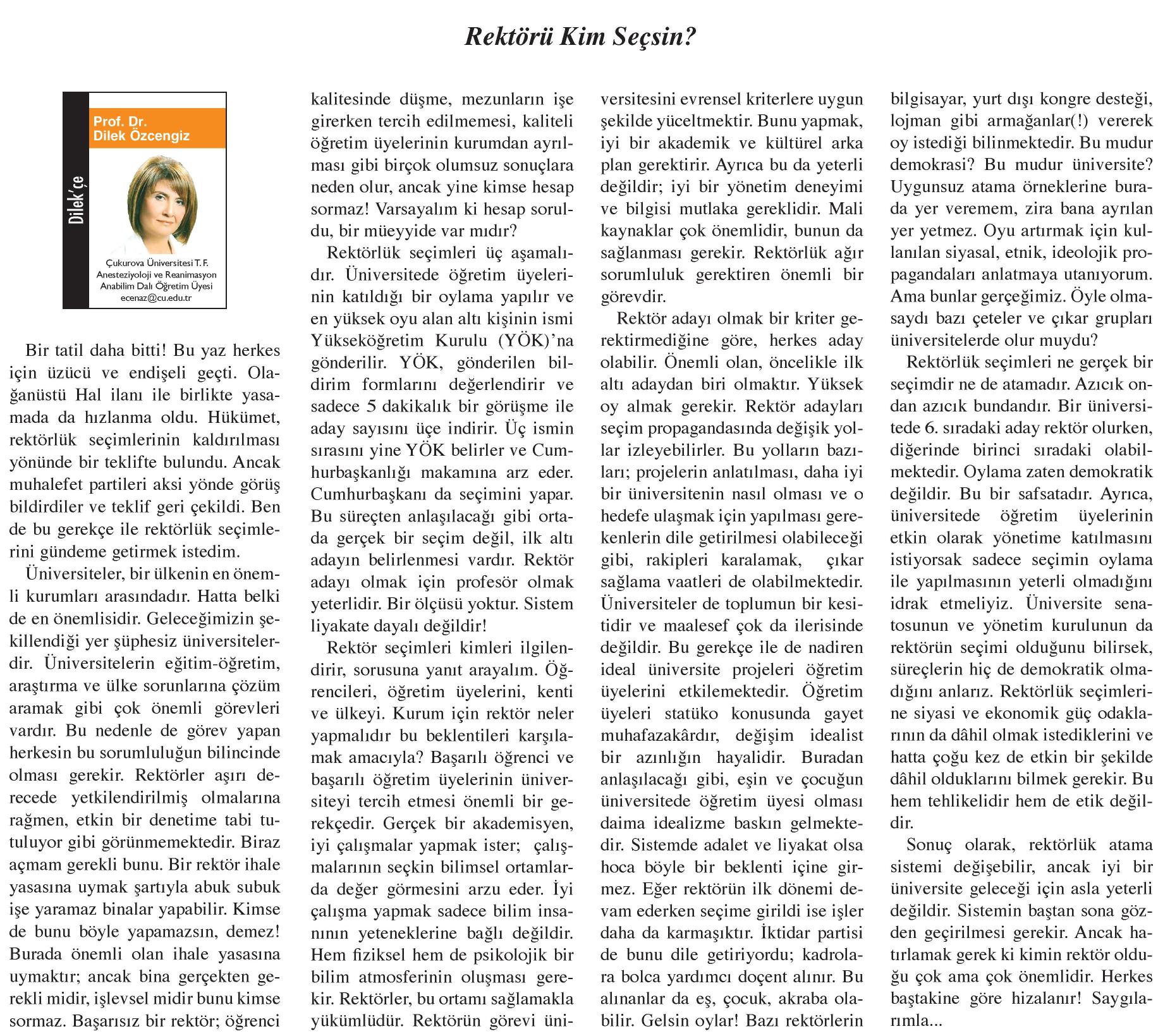 REKTÖRÜ KİM SEÇSİN?