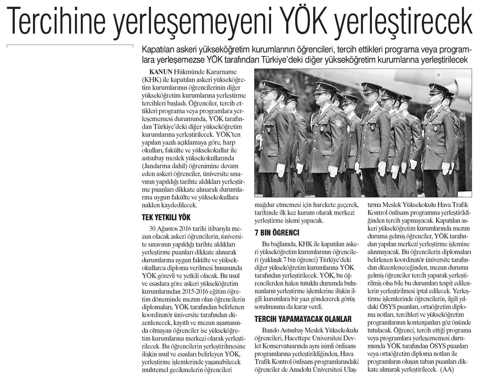 TERCİHİNE YERLEŞEMEYENİ YÖK YERLEŞTİRECEK