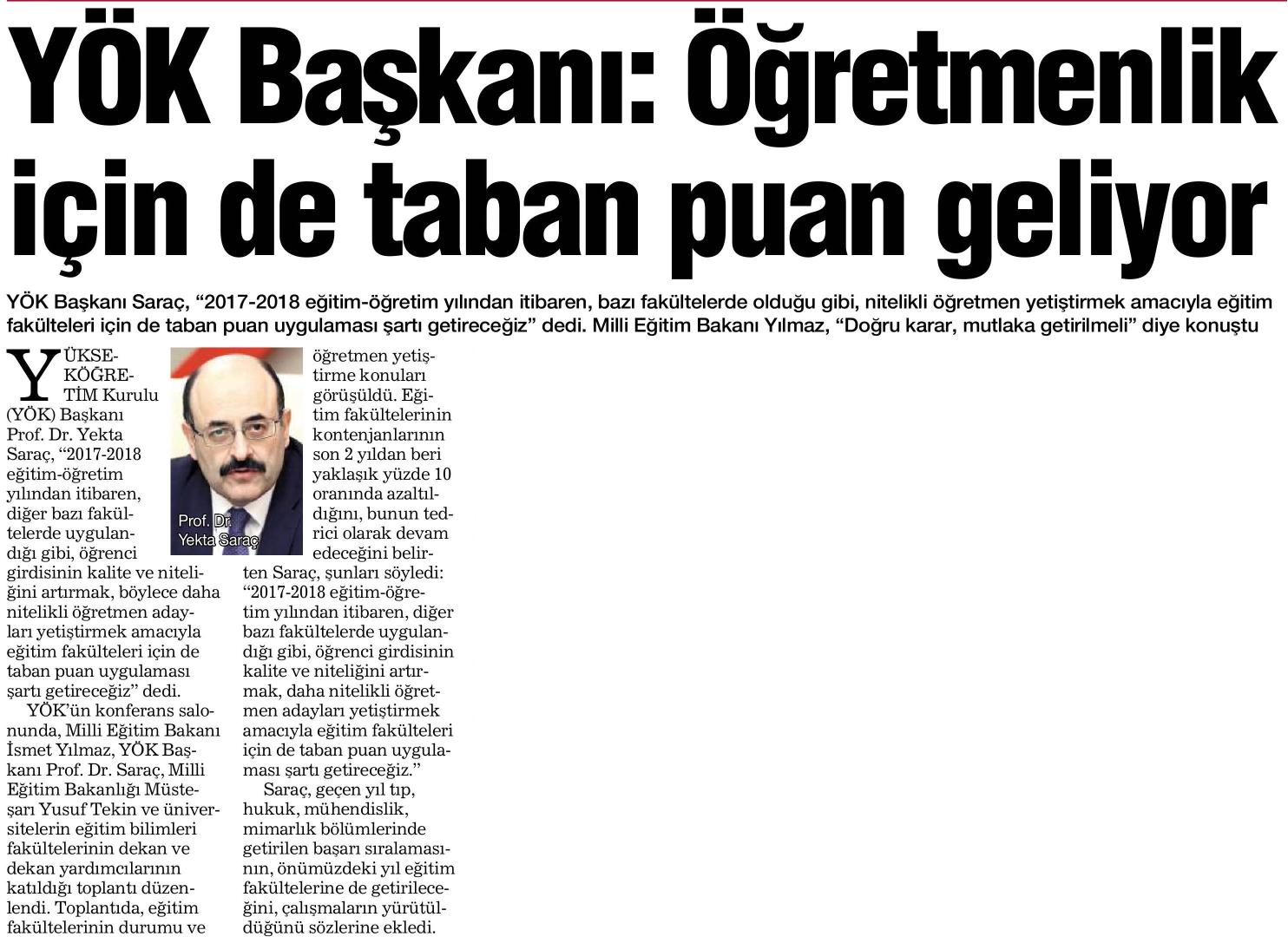 YÖK BAŞKANI: ÖĞRETMENLİK İÇİN DE TABAN PUAN GELİYOR