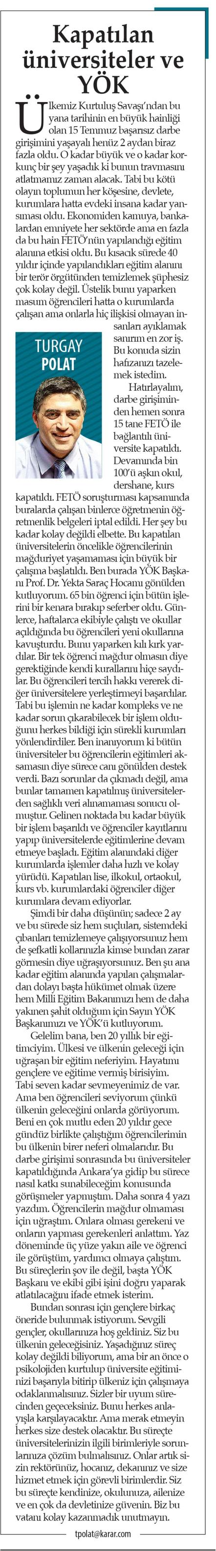 KAPATILAN ÜNİVERSİTELER VE YÖK