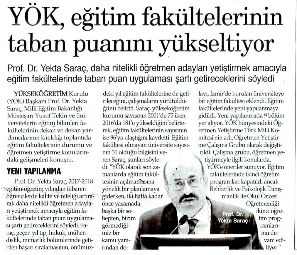 YÖK, EĞİTİM FAKÜLTELERİNİN TABAN PUANINI YÜKSELTİYOR