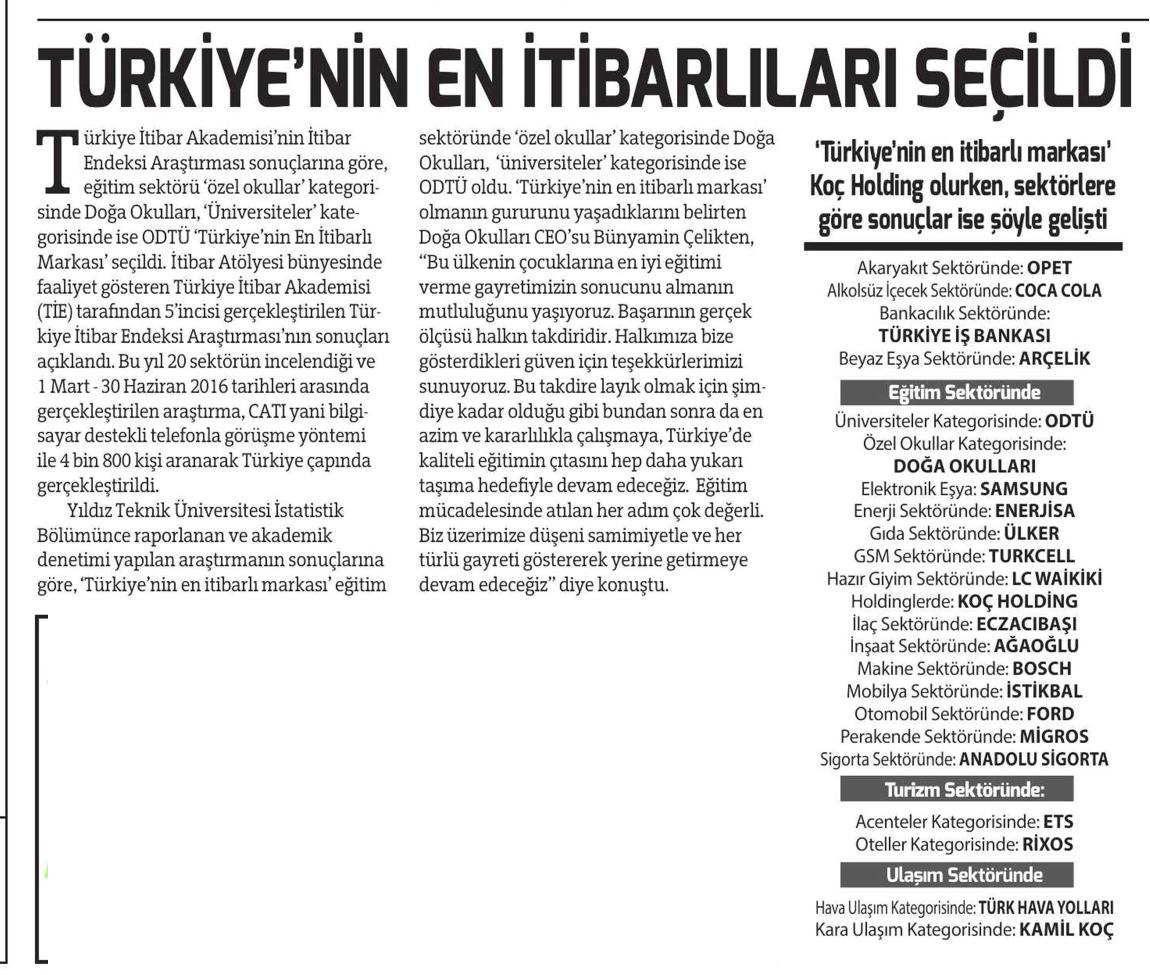 TÜRKİYE'NİN EN İTİBARLILARI SEÇİLDİ