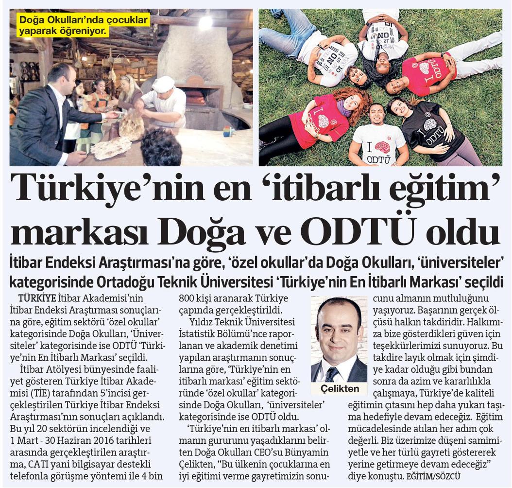 TÜRKİYE'NİN EN 'İTİBARLI EĞİTİM' MARKASI DOĞA VE ODTÜ OLDU