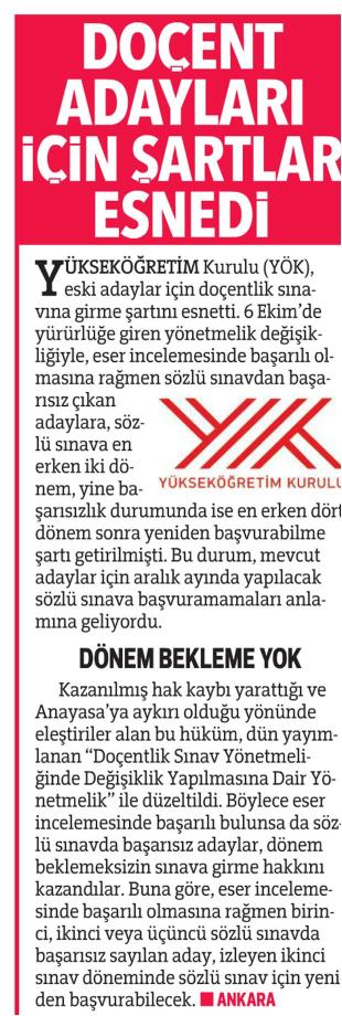 DOÇENT ADAYLARI İÇİN SARTLAR ESNEDİ