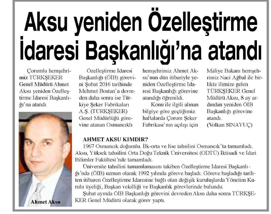 AKSU YENİDEN ÖZELLEŞTİRME İDARESİ BAŞKANLIĞI'NA ATANDI