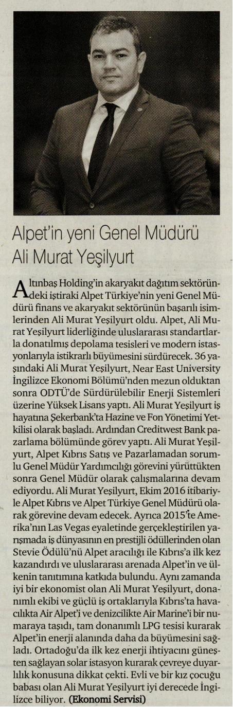 ALPET'İN YENİ GENEL MÜDÜRÜ ALİ MURAT YEŞİLYURT