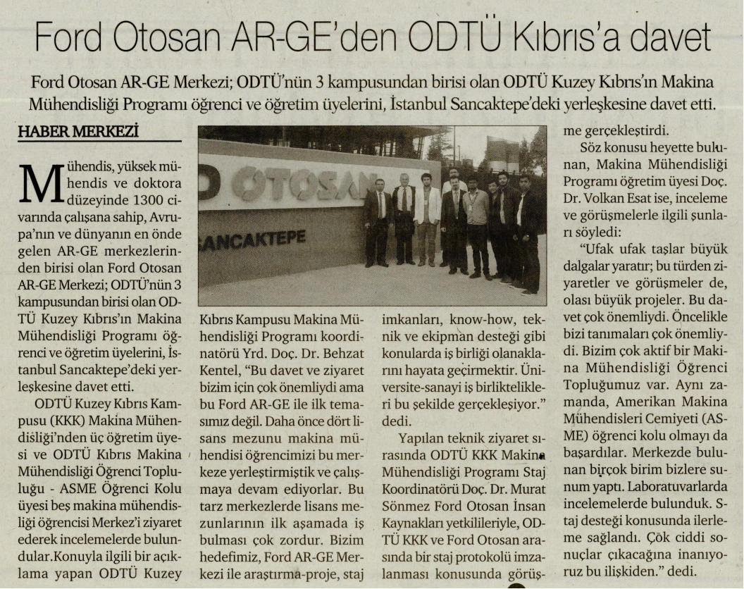 FORD OTOSAN AR-GE'DEN ODTÜ KIBRIS'A DAVET