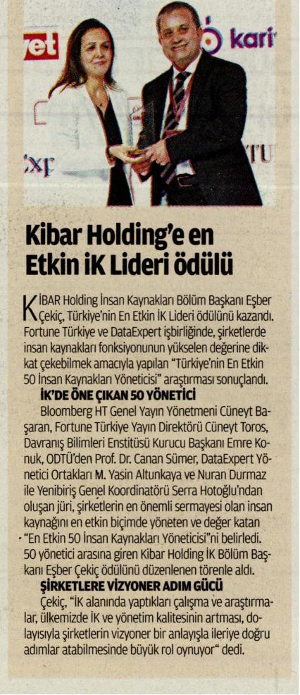 KİBAR HOLDİNG'E EN ETKİN İK LİDERİ ÖDÜLÜ