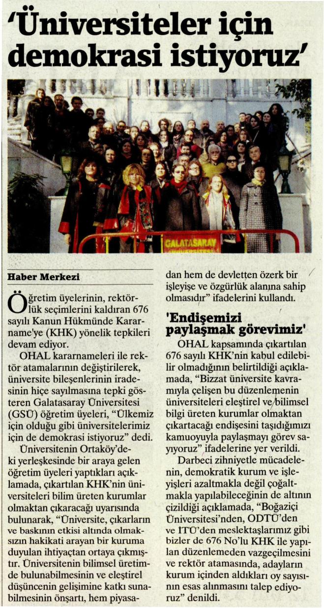 'ÜNİVERSİTELER İÇİN DEMOKRASİ İSTİYORUZ'