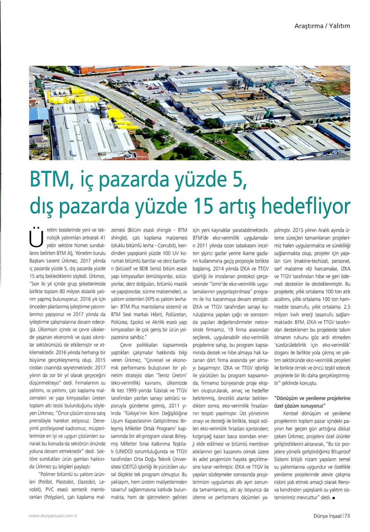 BTM, İÇ PAZARDA YÜZDE 5, DIŞ PAZARDA YÜZDE 15 ARTIŞ HEDEFLİYOR